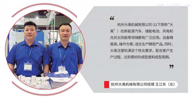 [導讀] 杭州大禹機械有限公司(以下簡稱“大禹”)在新能源汽車、儲能電池、風電和光伏太陽能等領域都有廣泛應用。設備精度高,操作方便,適合生產精密產品。同時,大禹注塑機滿足個性化需求,配合客戶生產過程,達到更好的成型度和成型周期。