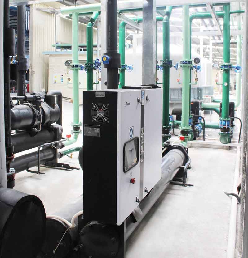與此同時,在泵房內他們還配備了中央水泵組,水泵組作為一個整體,固定于土建基座上,保證了良好的穩定性,噪音更低。泵組與管路連接處均采用軟管法蘭接頭,這樣可以降低震動對水系統管路的影響。水泵電源線及周邊線槽均做了防水處理,防止滲水觸電。冷水機主要配備的是環保水冷式中央冷水主機SICC,它可以為水系統提供冷凍水,其后端還配有雙層不銹鋼保溫水箱,通過大容量水箱的儲能作用,保證了系統水溫的穩定性,同時又避免了冷水主機頻繁啟動,節能省電,壽命更長。