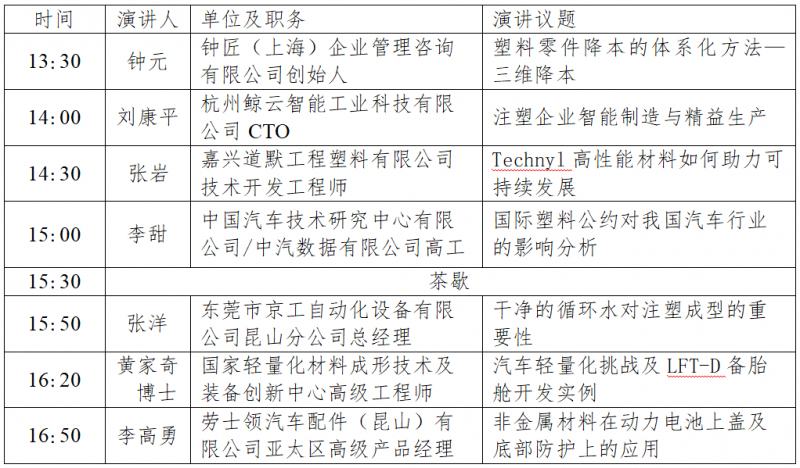 平行論壇一:電動汽車中的塑料:挑戰和機遇
