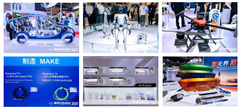 以“變革?協(xié)作?共塑可持續(xù)”為主題,展會聚焦“循環(huán)經(jīng)濟”、“數(shù)字化生產(chǎn)”、“創(chuàng)新材料”及“高端科技 中國制造”四大核心領(lǐng)域,集中展示了120余項全球/亞洲首發(fā)技術(shù)、3,800余臺機械展品及1,600多家原材料供應(yīng)商的創(chuàng)新成果。從先進的注塑成型設(shè)備、AI 視覺檢測系統(tǒng),到生物基材料、高性能阻燃材料,每一項技術(shù)突破都重新定義了行業(yè)標(biāo)準(zhǔn)。在人形機器人領(lǐng)域,PEEK、PPA等新型材料助力產(chǎn)品減重、提升續(xù)航;在低空經(jīng)濟板塊,輕量化材料滿足無人機和eVTOL的嚴苛需求。這些創(chuàng)新成果為橡塑產(chǎn)業(yè)向高端化、智能化、綠色化轉(zhuǎn)型升級提供了強大動力。