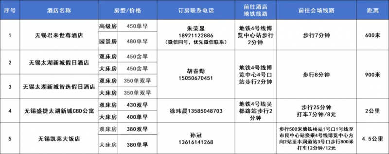 溫馨提示:1、請參會代表自行聯系酒店,付款留房。2、團體價格,請您于7月31日前預定。3、簽到處在無錫君來世尊酒店。由于報名人數較多,主會場酒店房間有限,請您盡快預定房間。