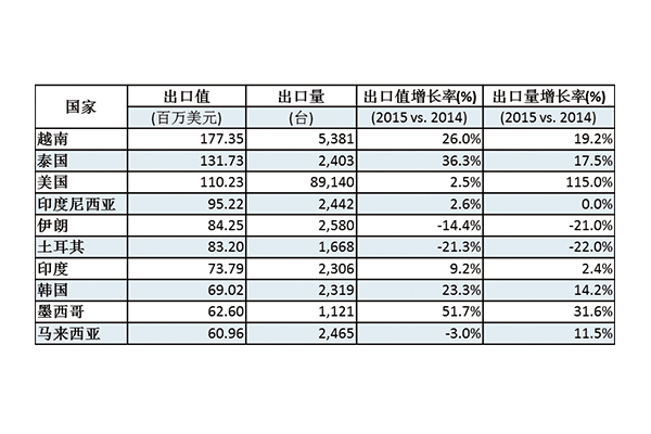 此外,經(jīng)過多年的發(fā)展,中國塑料機(jī)械制造商亦正大肆擴(kuò)張,發(fā)展海外業(yè)務(wù)。進(jìn)入新世紀(jì)以來,中國一直是世界上最大的塑料機(jī)械制造國。中國的一些頂級(jí)品牌正在積極籌備建立海外工廠和經(jīng)營機(jī)構(gòu),旨在推動(dòng)塑料機(jī)械出口業(yè)務(wù)。中國制造的機(jī)器尤為亞洲市場(chǎng)所青睞。2015年,中國塑料機(jī)械的首十大出口市場(chǎng)包括了越南、泰國、印度尼西亞、印度、韓國和馬來西亞這些亞洲國家。