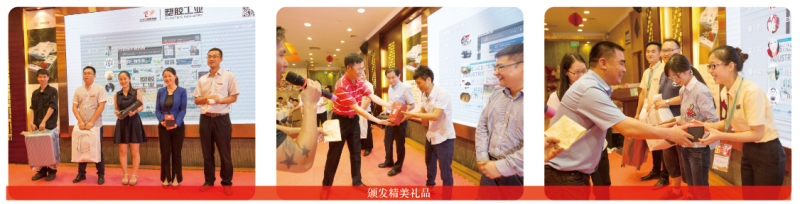 為了表達對行業友人的感謝,按計劃,我們在5月17日晚,特地在廣州好彩又一鮮酒店舉辦了行業友人答謝晚宴。前來赴宴、捧場的朋友成群結隊,28桌,桌桌滿座,擠滿了整個宴會大廳,場面盛大,人聲鼎沸。當晚,除了特色粵菜、美酒、還有花式泰拳精彩上演,加油聲、喝彩聲此起彼伏。三輪“搖一搖”現場搶禮品活動更是把氣氛推到了高潮,廣東省塑料工業協會會長符岸、金緯機械董事長何海潮、杭州大禹機械有限公司董事長楊茂榮三位大佬先后擔任頒獎嘉賓,上臺為中獎者頒發獎品。