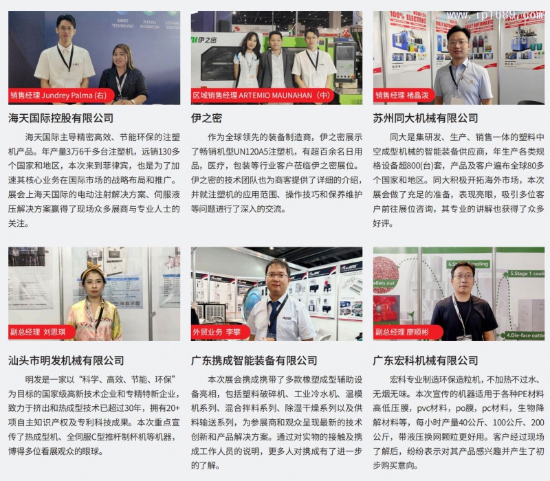 海天、伊之密、同大、攜成、明發、億通、盟星、宏科等國內企業也紛紛亮相,在此尋找新的商業機會、建立與國外企業的業務聯系及合作關系,為進一步打入菲律賓市場做準備。