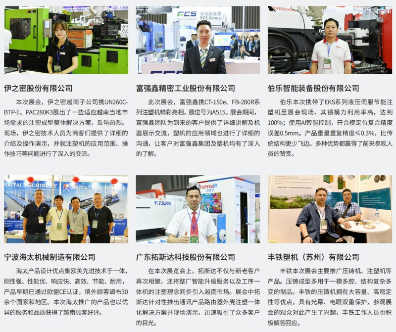 據(jù)悉,上屆越南國際塑料橡膠工業(yè)展有462個(gè)攤位,來自19個(gè)國家和地區(qū)的271家參展企業(yè)攜帶展品參加了展出,其中外商參展比例在80%以上,現(xiàn)場(chǎng)接待專業(yè)觀眾13709人。今年展會(huì)人流量也只增不減,《塑膠工業(yè)》緊抓展會(huì)時(shí)機(jī),走訪現(xiàn)場(chǎng)展商,不僅爭(zhēng)取為國內(nèi)各企業(yè)收集最多的海外商家信息,助力中國企業(yè)快速了解海外塑料行情,更有針對(duì)性地進(jìn)軍海外市場(chǎng),同時(shí)也幫助國內(nèi)企業(yè)宣傳推廣,擴(kuò)大影響力。
