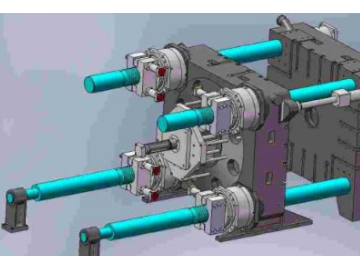 在螺桿推力的作用下,已經(jīng)塑化好的熔料以一定的速率流經(jīng)料筒、噴嘴、流道、澆口等處后注入模腔,注射壓力也因克服流動阻力而逐漸下降。