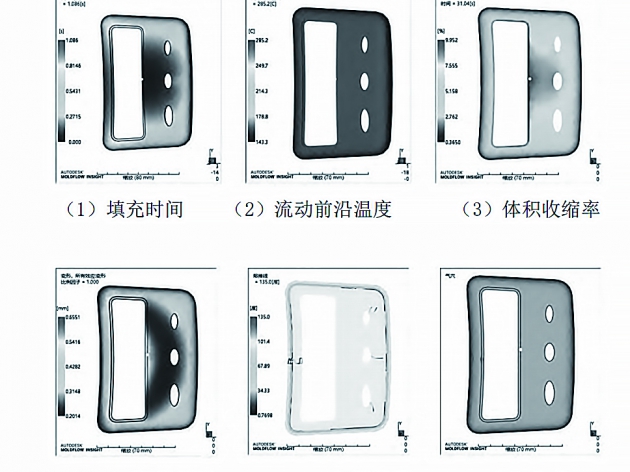 分析熱敏打印機底殼的結構特點,利用UG及Moldfow軟件進行建模并模擬注塑成型過程。結果表明:澆口位置由底部中心改為螺紋裝配孔處能夠有效避免試模時產生的熔接痕,填充效果良好。根據模流分析結果得出,最佳熔體...