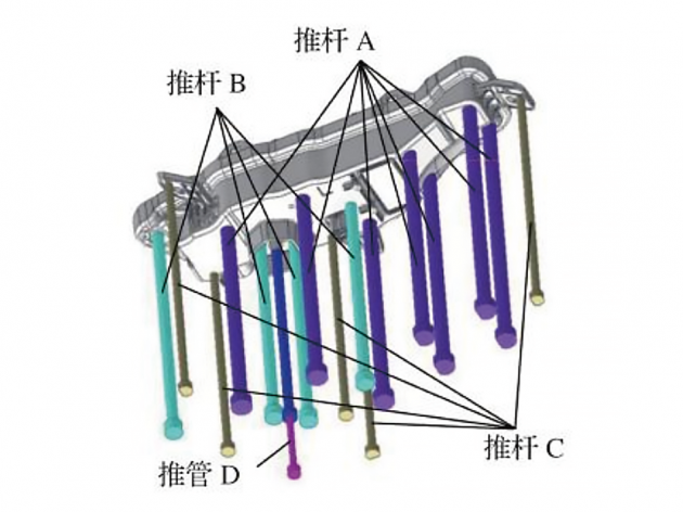根據汽車杯托底座產品的結構形狀與技術要求,設計了兩點針閥式熱流道進膠的注塑模具。在模具的動模側設計了多組滑塊脫模機構,且為防止產品側面的加強筋被滑塊拉傷,在滑塊內部設計了兩處頂針。在定模側設計了兩個大...