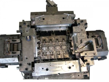 大水口模具:流道及澆口在分模線上,與產品在開模時一起脫模,設計最簡單,容易加工,成本較低,所以較多人采用大水口系統作業。塑料模具結構分為兩部分:動模和定模。
