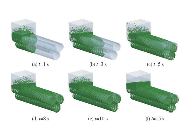 基于離散元法分別對同向旋轉(zhuǎn)的三螺桿以及雙螺桿擠出機(jī)固體輸送行為進(jìn)行仿真模擬,對三螺桿擠出機(jī)顆粒 速度分布以及受力分布進(jìn)行分析,將三螺桿和雙螺桿擠出機(jī)顆粒填充效率、輸送質(zhì)量以及質(zhì)量流率進(jìn)行對比分析。