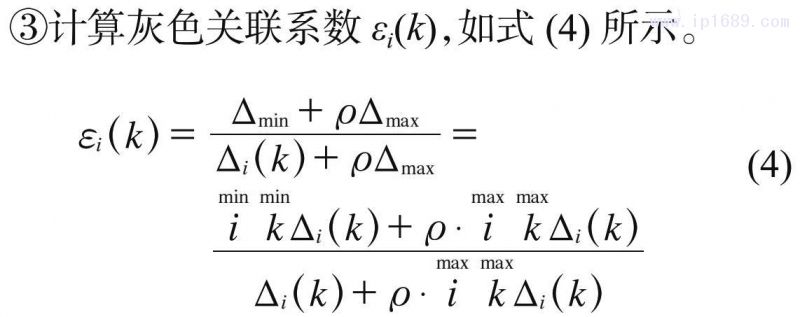 ③計算灰色關聯系數εi(k),如式(4) 所示。