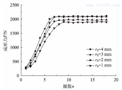 2. 3 成形工具圓角半徑對成形力的影響