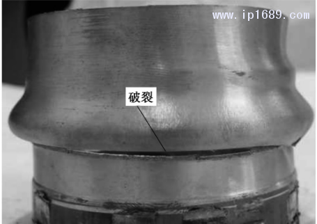 由圖11可知,成形力的大小與管壁厚度成正相關(guān)。在徑向進(jìn)給量一定的條件下,管壁越厚,材料發(fā)生變形的體積越大,成形工具壓入材料時(shí),受到材料的反擠壓抗力越大,所需的成形力也就越大。管壁厚度對設(shè)備的影響較大,材料越厚,所需設(shè)備的輸出功率越大,在設(shè)備一定的條件下,要成形較厚的材料需考慮多次成形的方法,此外壁厚太小成形件容易產(chǎn)生破裂,如圖12所示。