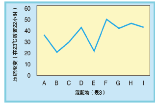 圖9、混配物A~I的壓縮形變(在23℃放置22小時)
