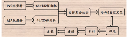 作為一種能節材代木的新材料,經過十幾年的自主發展,木塑復合材料已逐步發展成為一個新興產業。近年來,國內企業加快木塑復合材料在室內裝飾、家具等領域的應用開發,并取得了良好成果。筆者根據過往的技術經驗及實際生產中的一些心得,就ASA-PVC共擠木塑工藝作了分享,供讀者了解。