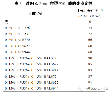 透明0.2 rnnl增塑PVC膜的光穩定性見表3。