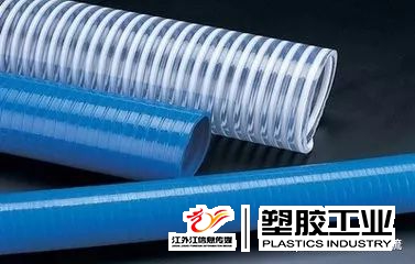 由于PVC軟管內有了硬質PVC圓條螺旋作骨架,從而提高了軟質PVC管的剛度和工作強度。這樣,螺旋增強PVC 管就可以輸送有一定壓力的液體,另外這種管還具有耐腐蝕、易彎曲等優點。在某些領域它可以代替橡膠管或鋼管輸送液體、氣體和粒狀固體;也可以替代金屬軟管作機電設備中的電纜護套等。