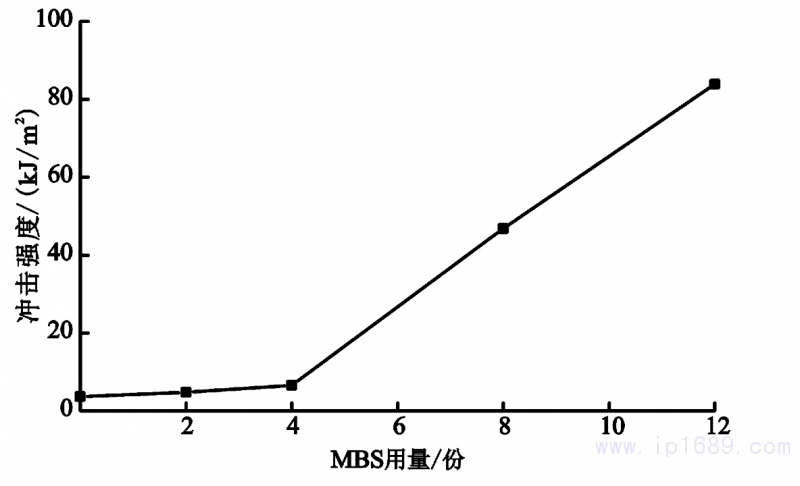 圖5 MBS用量對PVC材料沖擊強度的影響