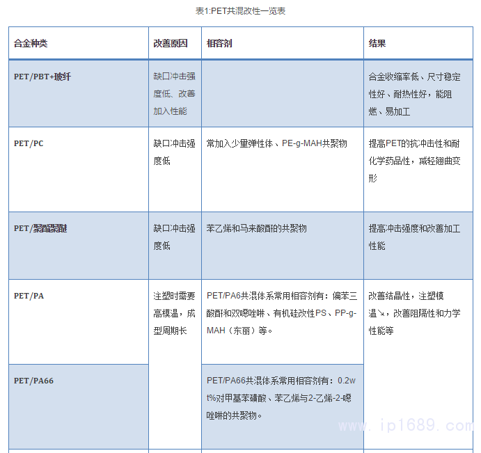 注: PET除與極少數聚合物(如聚酯)有一定相容性外,與其它聚合物的相容性都很差,因此必須進行增容。