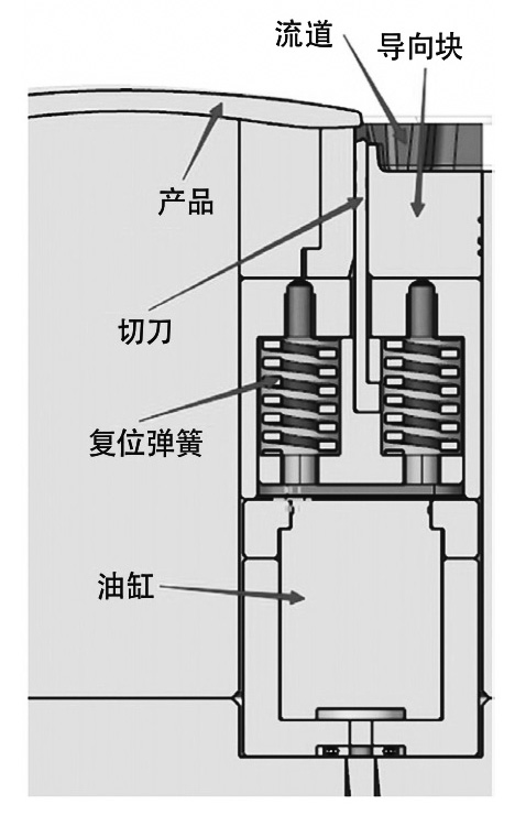 復(fù)位彈簧:當(dāng)切刀向上完成切斷動(dòng)作后,系統(tǒng)進(jìn)行泄壓,此時(shí)復(fù)位彈簧施力切刀復(fù)位。