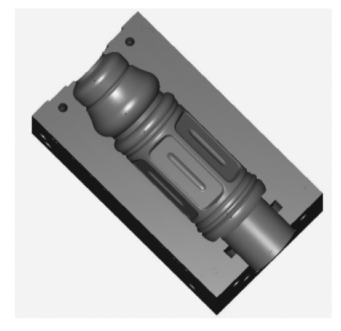隨著三維造型軟件的不斷提高,在模具設(shè)計、制造過程中,異型曲面的設(shè)計與自由曲面應(yīng)用日趨增加。同時,加工制造過程中對形狀及尺寸精度的要求越來越高,供貨期限也越來越短,這就對加工過程有了更高的要求。高速數(shù)控加工技術(shù)對以往的加工工藝有較大影響,逐步改變了以往的加工工藝流程。高速加工中心可以加工熱處理后的模具鋼,可以有效減少加工過程的時間,降低加工成本,提高加工生產(chǎn)效率。下面通過實例對典型吹塑模具型腔的數(shù)控加工工藝進(jìn)行分析。