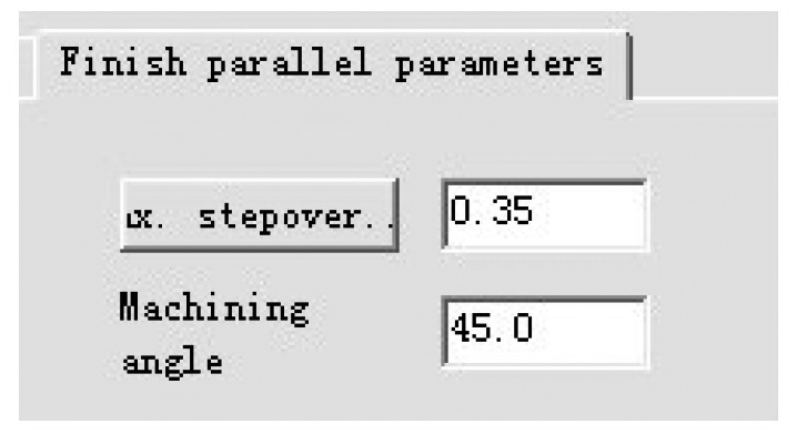 由于MasterCAM 沒有半精加工設(shè)置,因此選擇的是曲面精加工的Paraiiel 命令。選用 φ12 mm 球頭銑刀。因粗加工采用 φ20 mm 刀具型腔底面留有較大的余量,為了改善切削狀況,保持較高的速度和較低的切削負(fù)荷,同時以避免產(chǎn)生縱向刀紋。如果瓶口部分圓弧較小,再添加一把 φ8mm 球刀進(jìn)行加工,以獲得整個型腔表面精加工的均勻預(yù)留量。最后選用 φ6 mm 球刀半精加工,轉(zhuǎn)速為 24 000r/min,進(jìn)給速度為 3 500 mm/min。在生成加工刀具運動軌跡時,考慮到加工效率等因素,故應(yīng)選擇往Zigzag 走刀方式,設(shè)置切削間距為 0.35 mm,雙向切削預(yù)留 0.1 mm 余量,切削角度設(shè)置為45°,其參數(shù)設(shè)置如圖4 所示,選軸向為切削方向。
