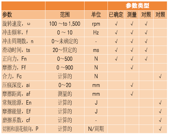 表2、儀表化的切割和崩花分析儀(ICCA)的參數列表
