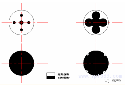 由于該模具使用時(shí)間較長(zhǎng)(5年),生產(chǎn)數(shù)量很大(30萬件),其5點(diǎn)式澆注系統(tǒng)中心澆口周圍在注射壓力作用下發(fā)生脹模,使制品通孔產(chǎn)生飛邊,導(dǎo)致透孔率只有70%,嚴(yán)重影響了該制品的使用功能,且不透孔部分都集中于中心澆口部位。