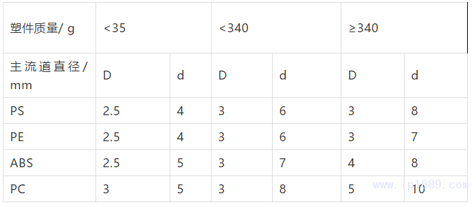 常用塑料的直澆口尺
