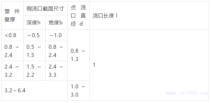 側澆口和點澆口尺寸的推薦
