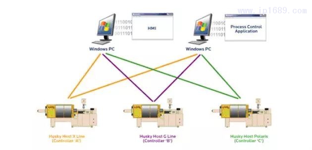 帶和不帶Husky主機的注射成型系統設備網絡連接。