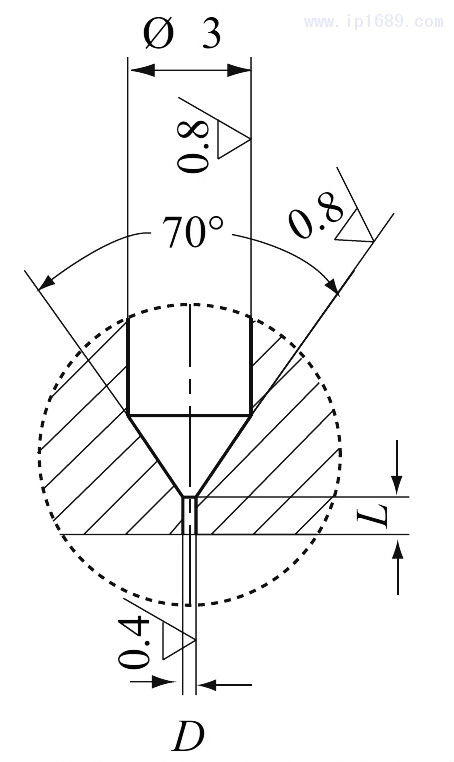 根據課題組之前的研究表明[7],PE-UHMW/PE-HD共混物熔融紡絲過程中圓柱形擠出口模長徑比L/D為5,口模直徑D為0.6mm,口模收斂角為70°時,初生絲具有較好的擠出穩定性,同時模具也容易被清理,因此選用該結構的噴絲板,其物理模型如圖1所示。