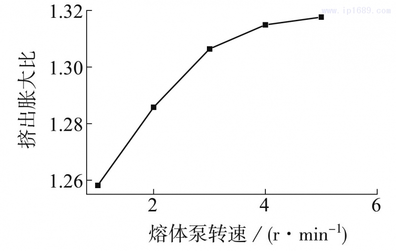 (2)熔體泵轉速對擠出脹大比的影響。