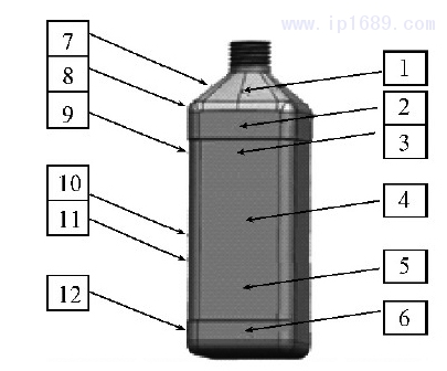 擠出吹塑過程是1個大變形、大應變的過程,包括型坯成型、型坯吹脹和制品冷3個階段[2]。當型坯與模具型腔接觸時,變化機理極其復雜,導致壁厚不均勻的直接原因是型坯吹脹過程中各部位的形變不一致[3]。1 L墨水瓶是常見的日用品,采用擠出吹塑成型,要求壁厚0.5~1mm。但生產中普遍存在厚度不均的問題,厚度不均將會造成材料的收縮不一致,厚壁位置會在表面出現縮水,凹坑等問題,影響外觀,而且厚壁與薄壁轉接處會產生內應力,影響產品的強度[4]。文章從成型工藝條件的角度出發,探討了其對制品厚度的影響,改善了壁厚不均的情況。