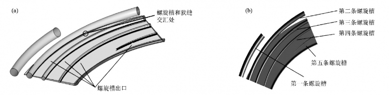 (a)螺旋槽和狹縫交匯處及螺旋槽出口 (b)螺旋槽編號