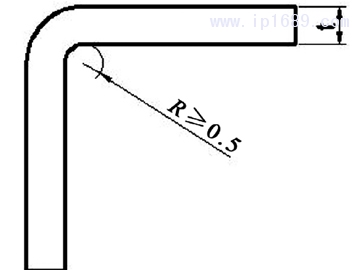 圓角優化設計要點如下:(1)塑料部件除了必須要保留的尖角外,凡轉角處應采用圓角過渡。圓角的使用能夠在結構上減少應力的集中,提高塑料部件在使用中的強度;還能夠保證塑料部件在注塑過程中的熔融體具有良好的流動性,保證其能夠充滿磨具,有利于脫模。而且相應模具在結構設計中多采用圓角,能夠保證在模具生產中減少模具的應力集中,提高模具的強度和使用壽命。(2)內圓角 的半徑R一般為壁厚的1/4~1/3倍[即R=(1/4~1/3)t],因為壁厚常取2~4 mm,所以通常地,R≥0.5 mm,且一般情況采 用等壁厚設計如圖1所示。