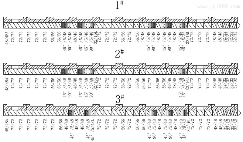 針對熔融段和混合段,設計了3種不同的螺桿 組合,如圖2所示。