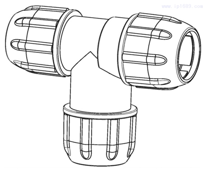 一種三通塑料延長件,包括連接件主體,連接件主體上設(shè)有3個(gè)連接頭,3個(gè)連接頭之間相互連通形成中空結(jié)構(gòu),連接頭上設(shè)有若干彈性壓片,若干彈性壓片沿連接頭周向方向平均設(shè)置,彈性壓片外表面設(shè)有螺紋,彈性壓片上設(shè)有鎖緊螺母,在三個(gè)連接頭內(nèi)至少有一處設(shè)有起增強(qiáng)摩擦作用的環(huán)形套環(huán)。通過在連接頭內(nèi)設(shè)置環(huán)形套環(huán),限位凸臺與彈性壓片相抵觸,防止環(huán)形套環(huán)掉入連接頭內(nèi)部。延晾桿穿過環(huán)形套環(huán)后,沿鎖緊方向扭動(dòng)鎖緊螺母,鎖緊螺母與彈性壓片的螺紋實(shí)現(xiàn)螺紋連接。通過自鎖力作用彈性壓片向連接頭中心靠攏,由于延長晾桿與彈性壓片之間設(shè)置了環(huán)形套環(huán),增加了延長晾桿與連接頭的摩擦力,使延長晾桿不會(huì)從連接頭上滑落,提高安全性(申請專利號:CN201820469615.2)。