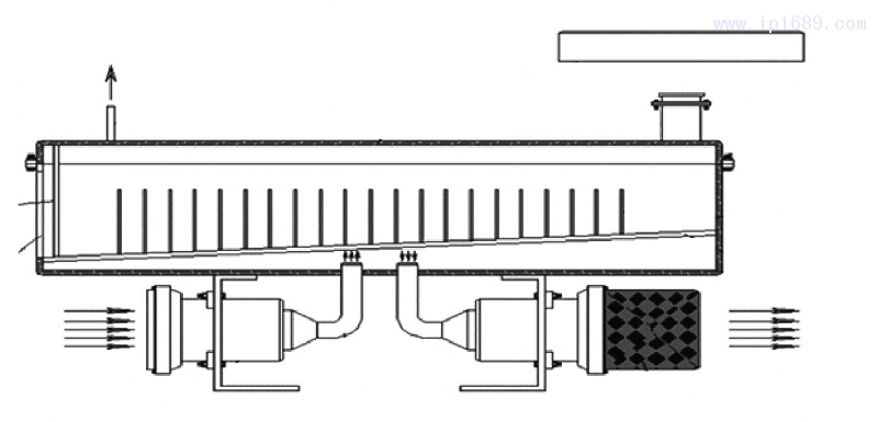 本實(shí)用新型公開了一種塑料顆粒熱風(fēng)干燥裝置,包括一箱體,在箱體的上端安裝有一可拆卸的箱蓋,在箱體的內(nèi)部位置處傾斜設(shè)置有一底板,該底板與箱體之間焊接固定,底板的傾斜角度為3~6°,在底板的板面上均布有插孔,通過插孔插入有插桿,插桿為空心,插桿的上端封閉,下端具有插管部分,插管部分插入至插孔內(nèi),插桿位于底板上方的那一部分上均布有噴出熱風(fēng)用的孔,在箱蓋頂部的靠近右側(cè)位置處焊接有一進(jìn)料管,在箱體的底部左右焊接有兩根支架,在其中一根支架位置處螺絲固定有一電熱風(fēng)機(jī);本產(chǎn)品可以實(shí)現(xiàn)塑料顆粒預(yù)干燥(申請專利號:CN201821656083.X)