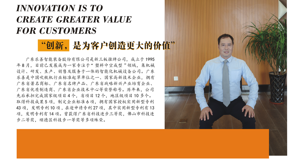 廣東樂善智能裝備股份有限公司(以下簡稱“樂善”)會“吹”在行業內早有定論,2017年樂善提出“全電吹瓶機將普及整個行業”,當時引起一片嘩然。兩年過去了,隨著全電機技術的逐步成熟,市場占有率不斷提高,樂善已經走在了行業的前頭,可見成功并非僅靠“吹”就能做到。《塑膠工業》記者近日見到了樂善董事長郭錫南,就樂善的未來發展及飽和競爭中的企業戰略規劃做了一場別開生面的對話。