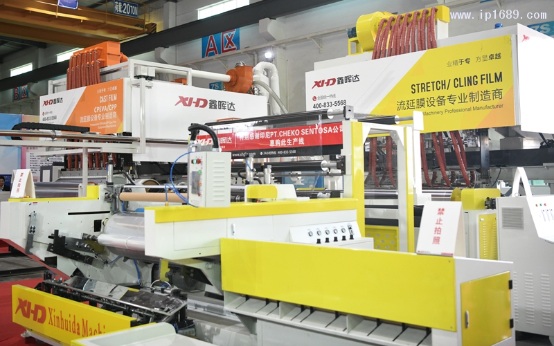 A:鑫暉達的這些設備,有三大性能。其一,生產的膜拉伸力強。我們精心挑選的高分子原材料,讓膜的韌性更強,可以從1米拉伸至6米,甚至遇到尖銳的物體也很難捅破,產品的平整度、透亮度都是一流的水平。其二,我們演示的四層共擠纏繞膜機,這一設備采用多螺桿配置,做出來膜質量高,客戶能更加靈活的控制成本。每個螺桿采用不同的原料,我們可以用不同種原料共擠出來高質量纏繞膜,具備超薄、超透、超彈力的優勢。其三,在微利時代,這兩款設備能在保證質量的前提下為客戶提供更高的利潤空間,如CPE 2.1米的模具,能滿足復合膜,紙巾、袋子等多種類膜的生產,真正做到了“百搭”。