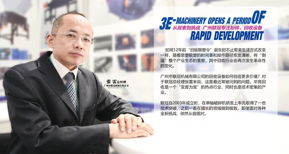 廣州市聯冠機械有限公司(以下簡稱“聯冠”)的回收設備如何創造更多價值?對于聯冠總經理張雷來說,這是最近常被問到的問題。畢竟回收是一個“變廢為寶”的熱點行業,同時也是技術密集的產業。