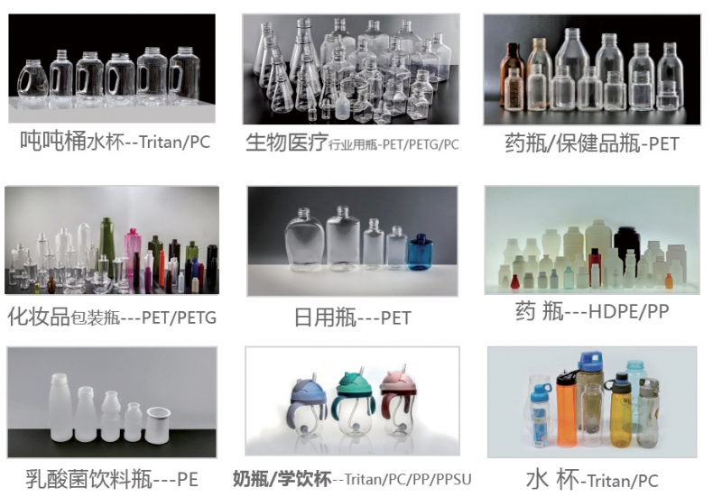 與其他中空成型工藝相比,一步法“注-吹”,“注-拉-吹”中空成型工藝具有顯著優勢。這種工藝能夠實現一次成型,由于瓶口和瓶底不存在廢料問題,無需進行額外的廢料加工,外觀精美,瓶口尺寸穩定,平整度好且密封性優良,質量因此得以大幅提升。尤其在使有PC、PET、PETG、PCTG(Tritan)等透明材料進行生產制品時,外觀性能優勢更為顯著。
