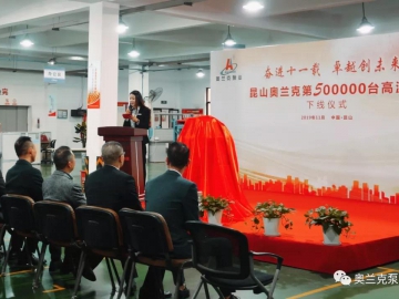 2019年11月18日,以“奮進十一載 · 卓越創未來”為主題的奧蘭克泵業第50萬臺高溫泵下線儀式,在奧蘭克生產車間隆重舉行