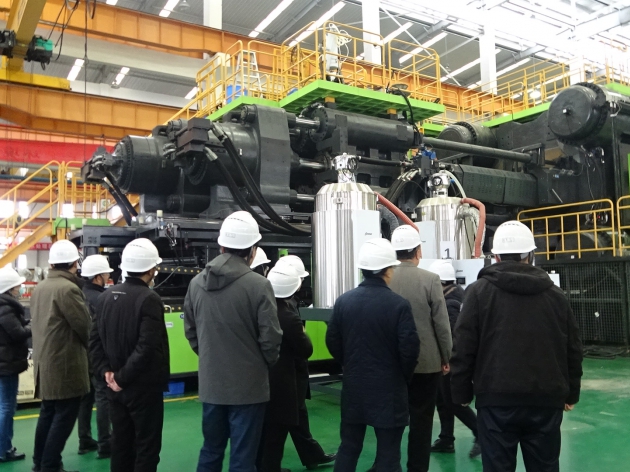 8500噸超大型注塑機由伊之密二板機產品線團隊承制,這臺超大型高精密注塑成型機的額定鎖模力為8500T,最大鎖模力可達9000T。