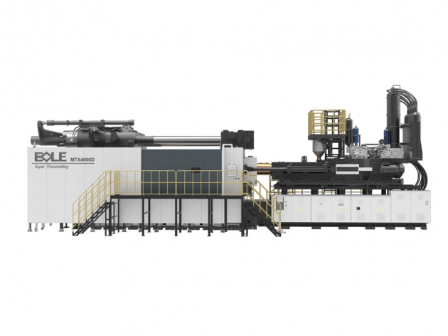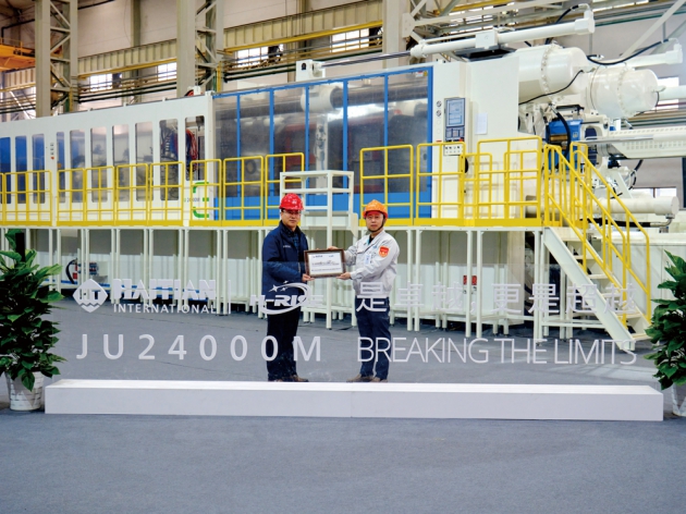 交付的JU24000M注塑機,鎖模力2400T,最大旋轉直徑4000mm,中板承重20T*2。