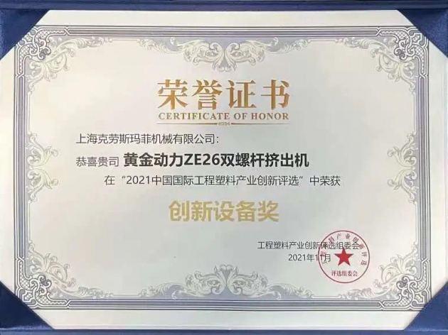 “小而不凡”,充滿“黃金動力”。在近期克勞斯瑪菲全新發布的黃金動力雙螺桿擠出機系列中,最小型的ZE26款脫穎而出,斬獲了2021中國國際工程塑料產業創新評選“中榮獲創新設備獎“的殊榮,備受市場關注。
