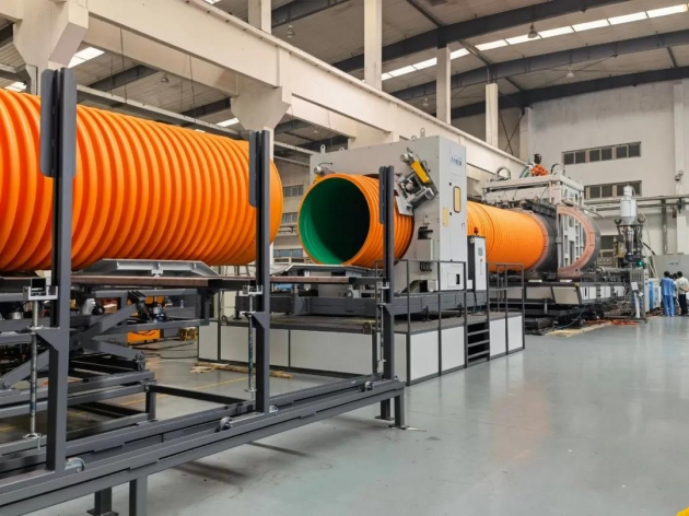 金秋8月,大連三壘科技有限公司經過3年研發(fā)的DN1800塑料雙壁波紋管自動化生產線,在公司裝配現場進行了DN1800SN12 PP雙壁波紋管試機,取得了一次性試機成功。