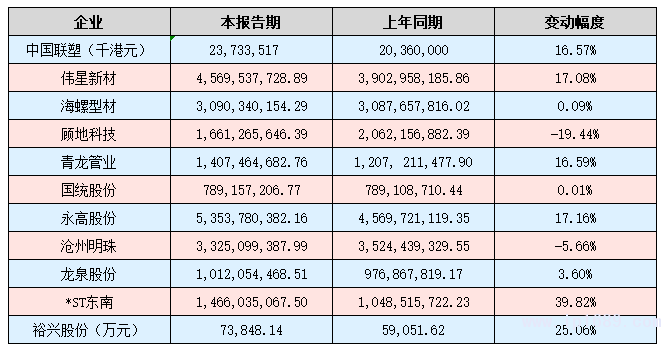 從各項數據來看,上年度運營狀況良好的企業主要有偉星新材、青龍管業、大東南、裕興股份等,其在營收、利潤、總資產等多方面均取得了較大幅度的增長。