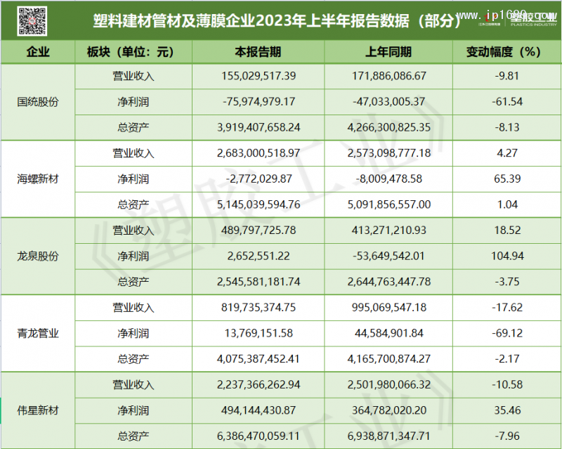 近日,塑料行業各企業2023上半年財報陸續出爐。總體上看,多家企業收入出現了負增長,據國家統計局數據,1-6月份,全國匯總統計企業塑料制品產量3536.26萬噸,同比下降0.71%。